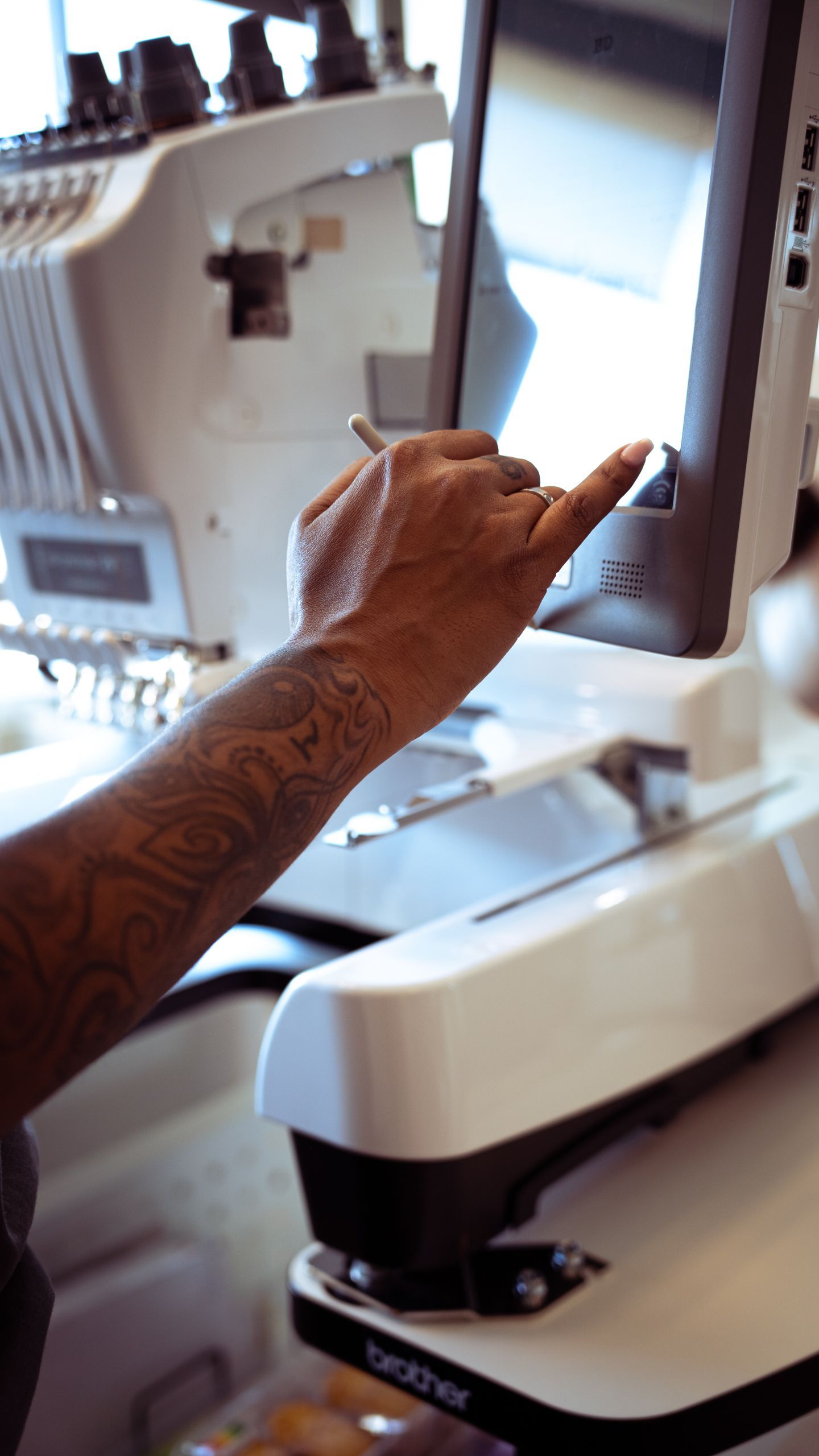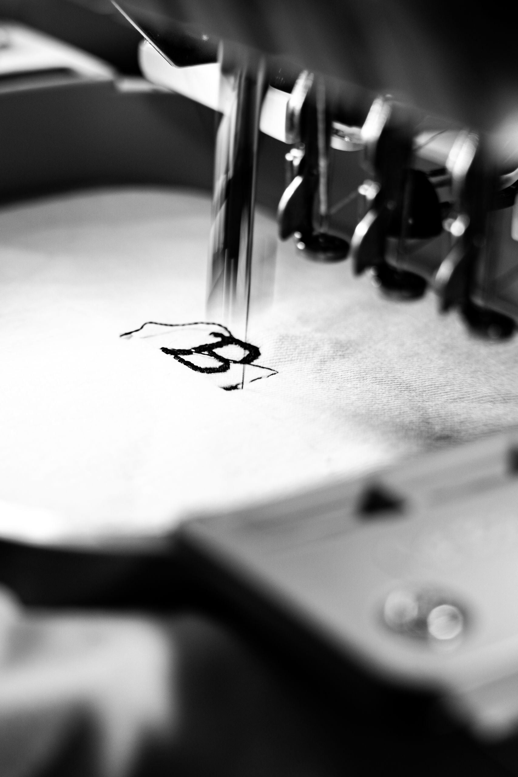 Borduurwerk op kleding, zoals hoodies, t-shirts en handdoeken. Namen, initialen of eenvoudige ontwerpen.